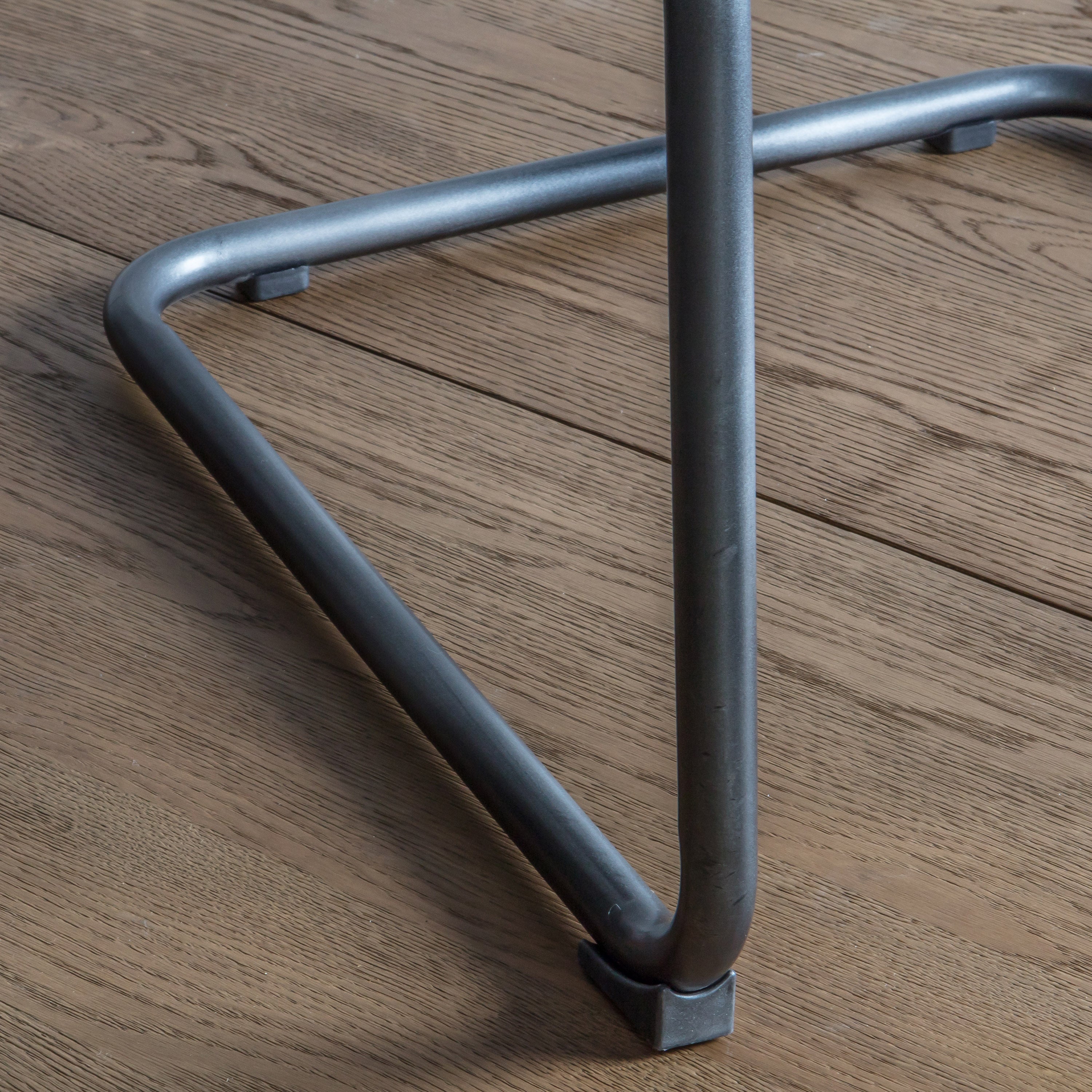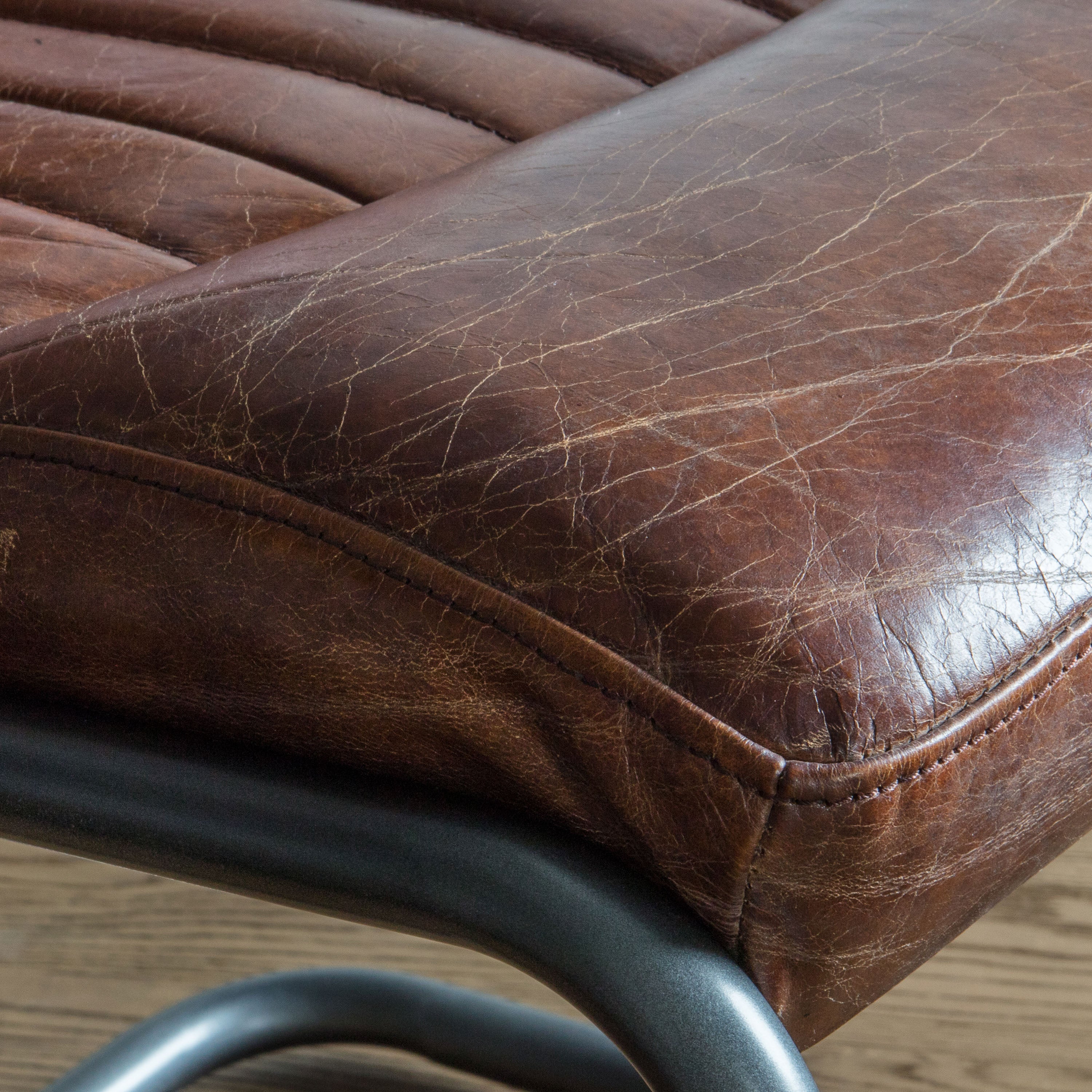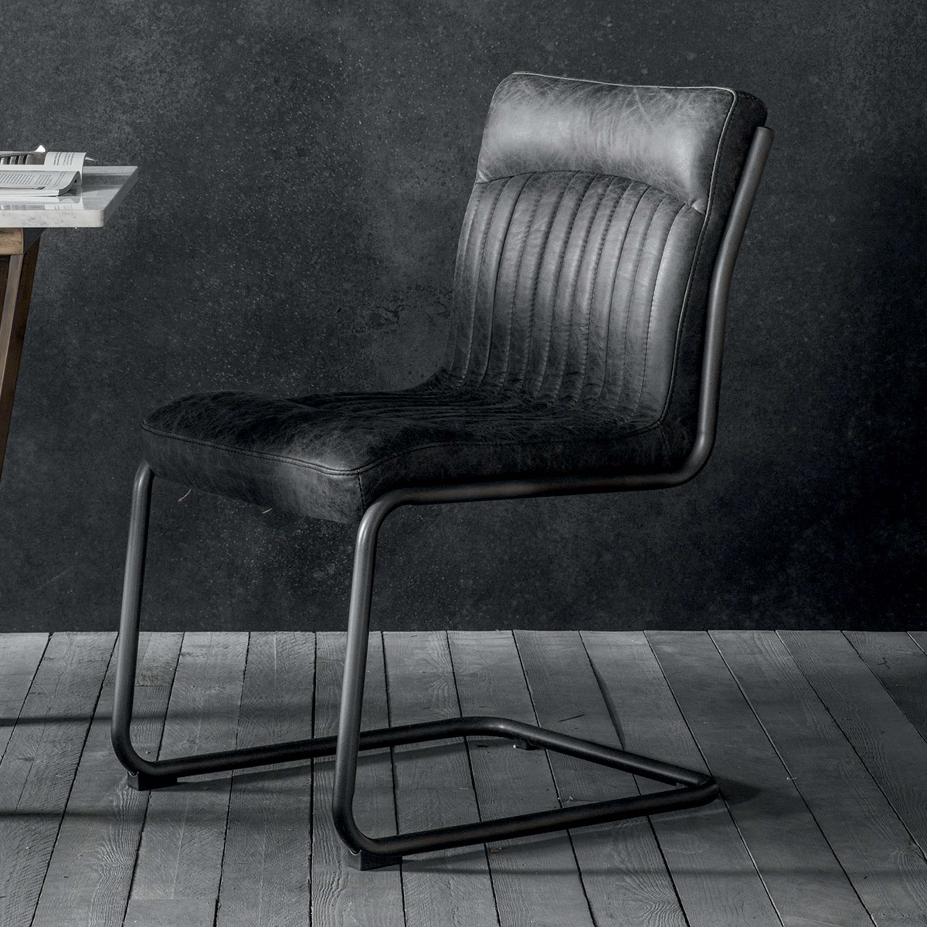 Crafted with a sturdy metal frame made out of iron, the Mayfield Chipman Chair boasts a sleek and modern look with black metal loop legs. The chair is upholstered with top grain leather, providing a luxurious and durable finish. You can choose between two elegant leather colours - brown leather or antique ebony leather - to suit your personal style and preference.