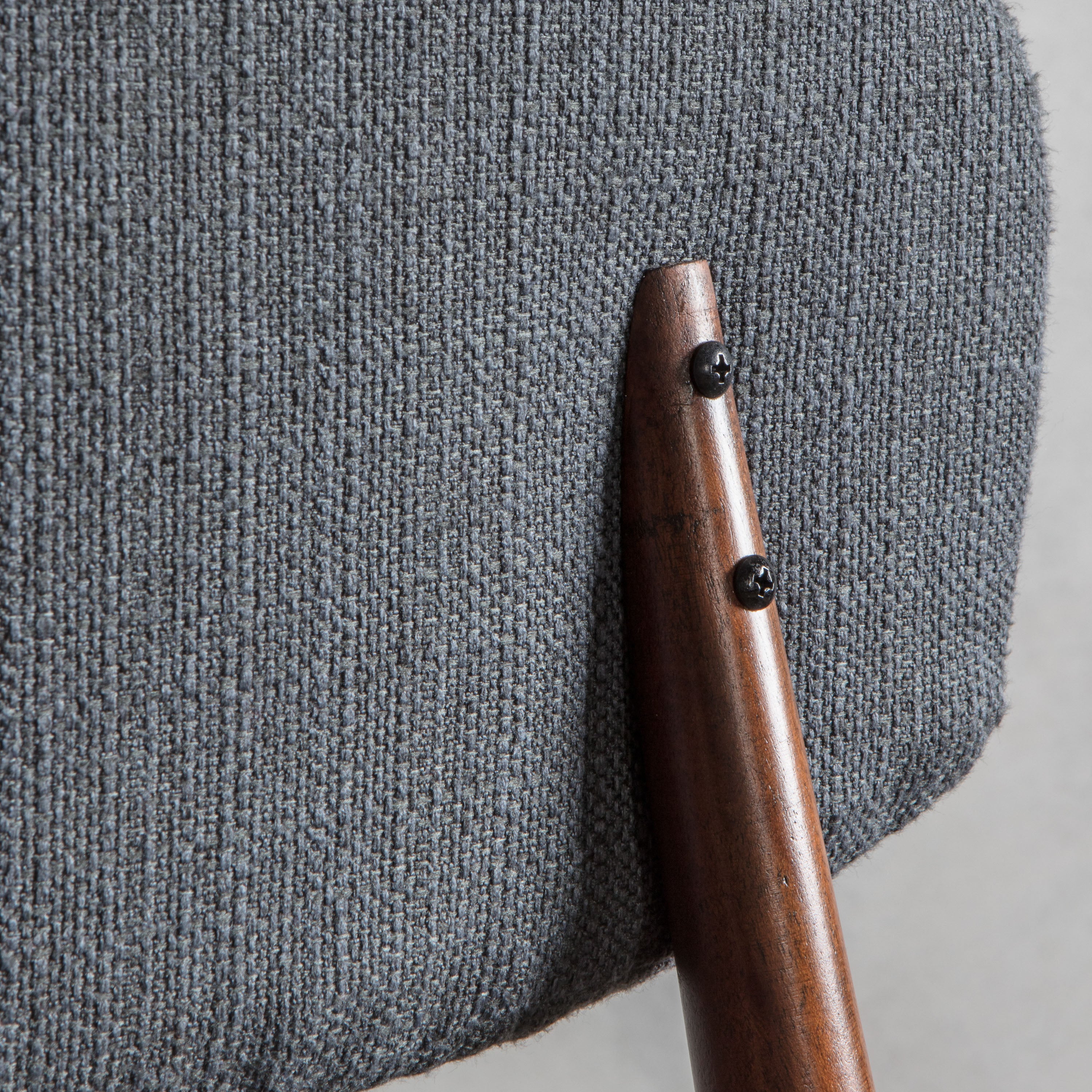 The design of the Montgomery Dining Chair is reminiscent of the mid century period, with a modern twist. The chair features clean lines and a curved backrest, providing comfort and support during meal times. The smart grey fabric upholstery adds a touch of elegance and complements a range of interior styles.