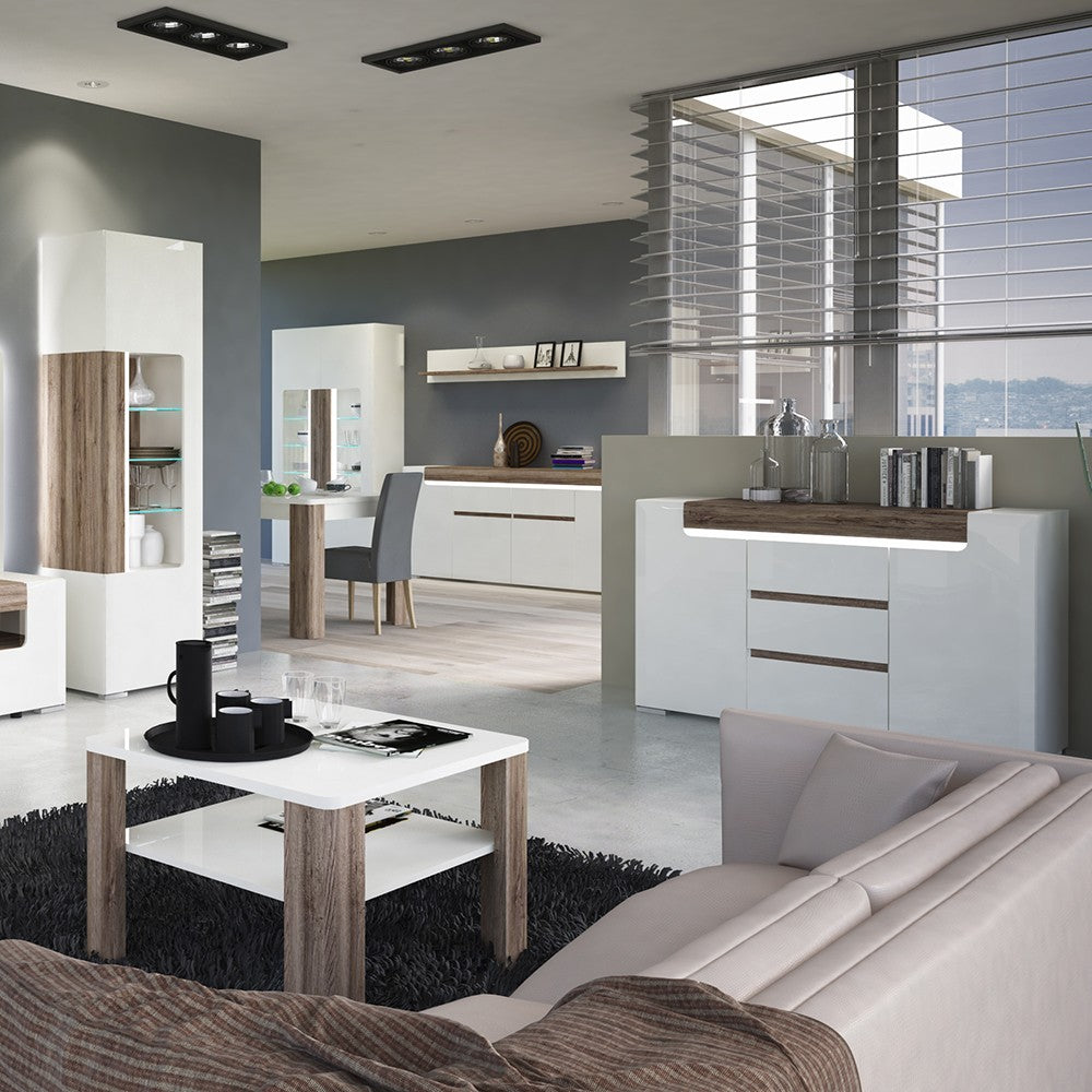 • White high gloss front with San Remo oak inset