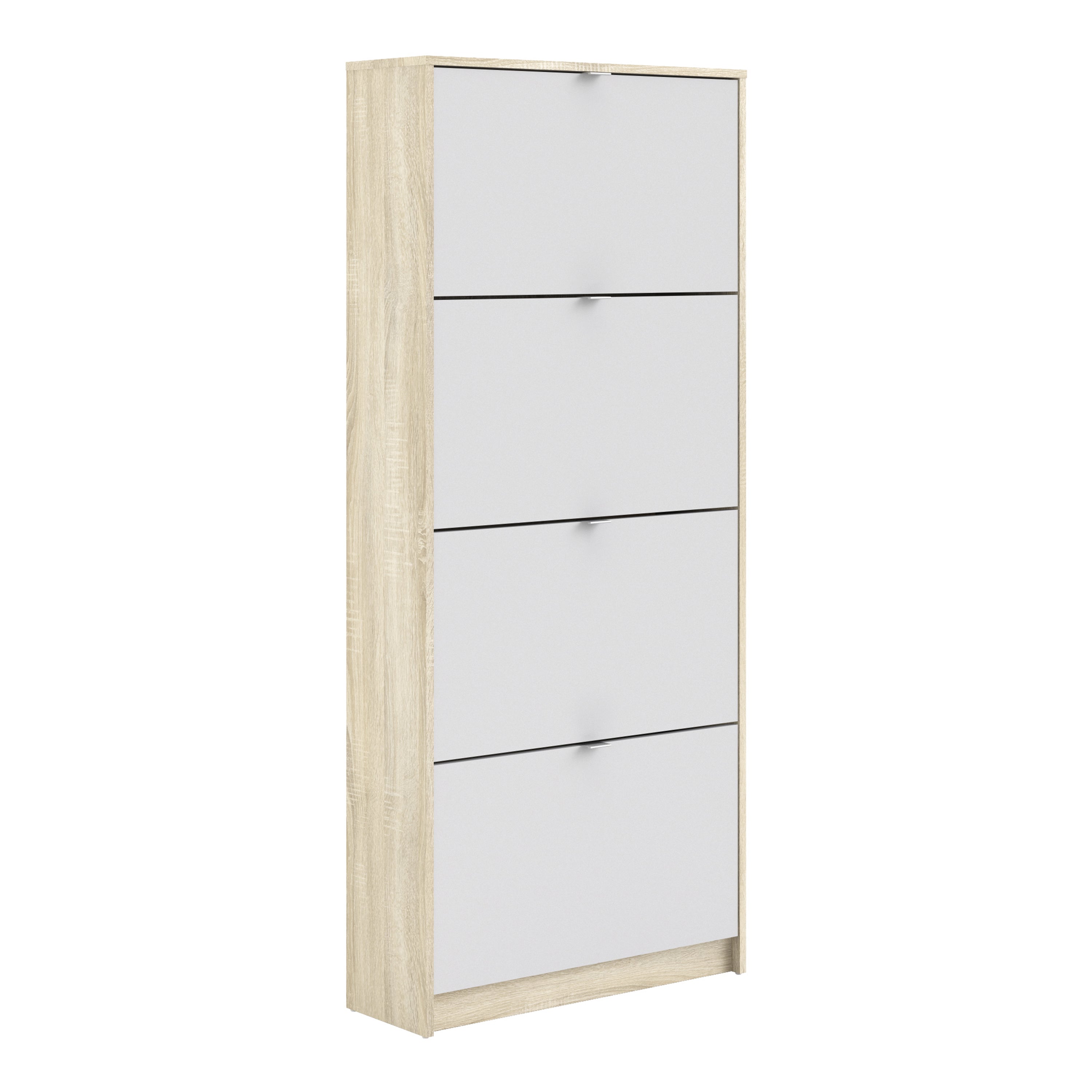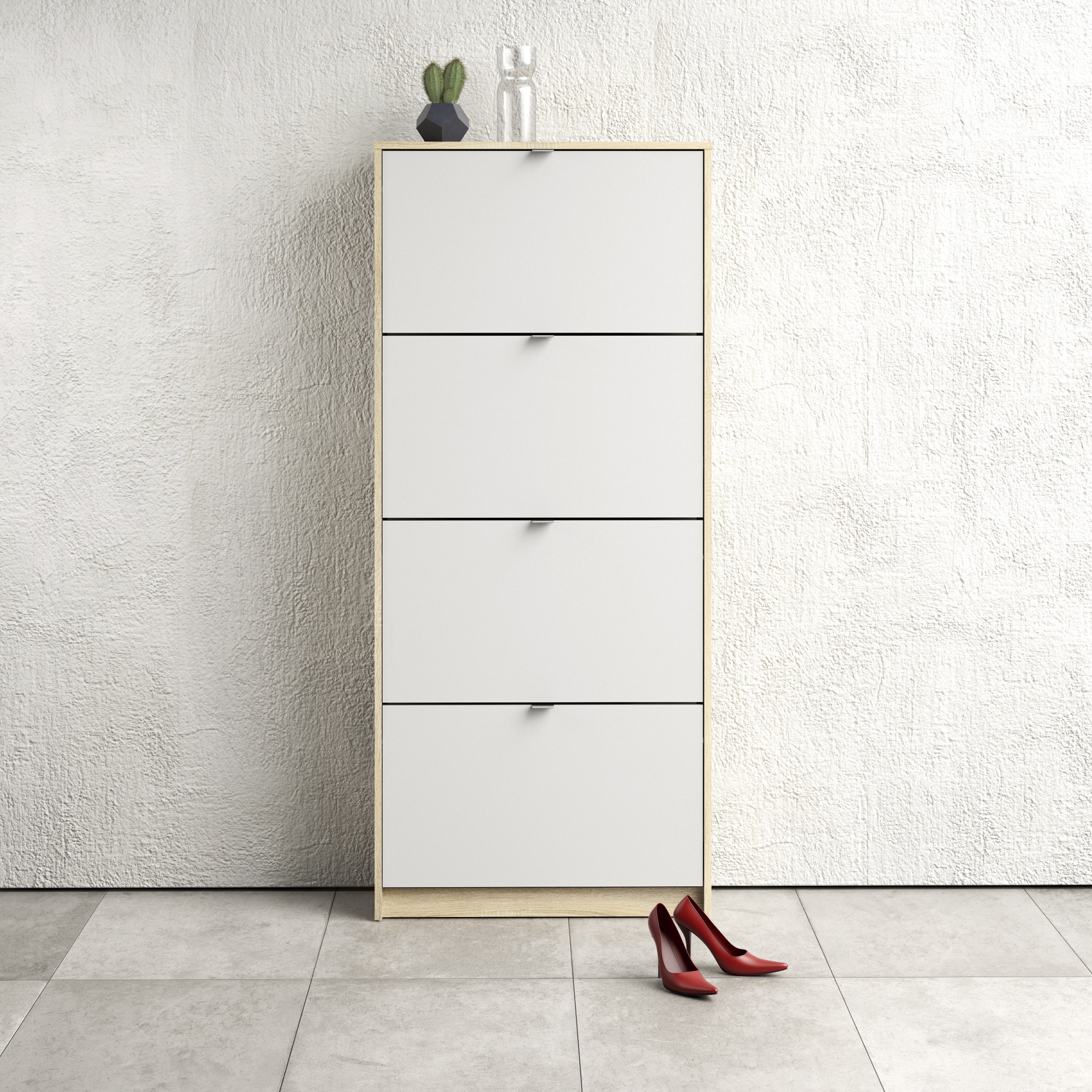 Axton Choctaw Shoe Cabinet With 4 Tilting Doors And 2 Layers In Oak Structure White